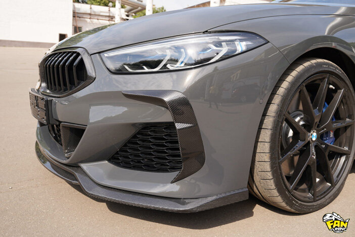 Карбоновая губа (спойлер) Спорт (Sport) на передний бампер БМВ (BMW) 8 и Gran Coupe G14, G15 и G16