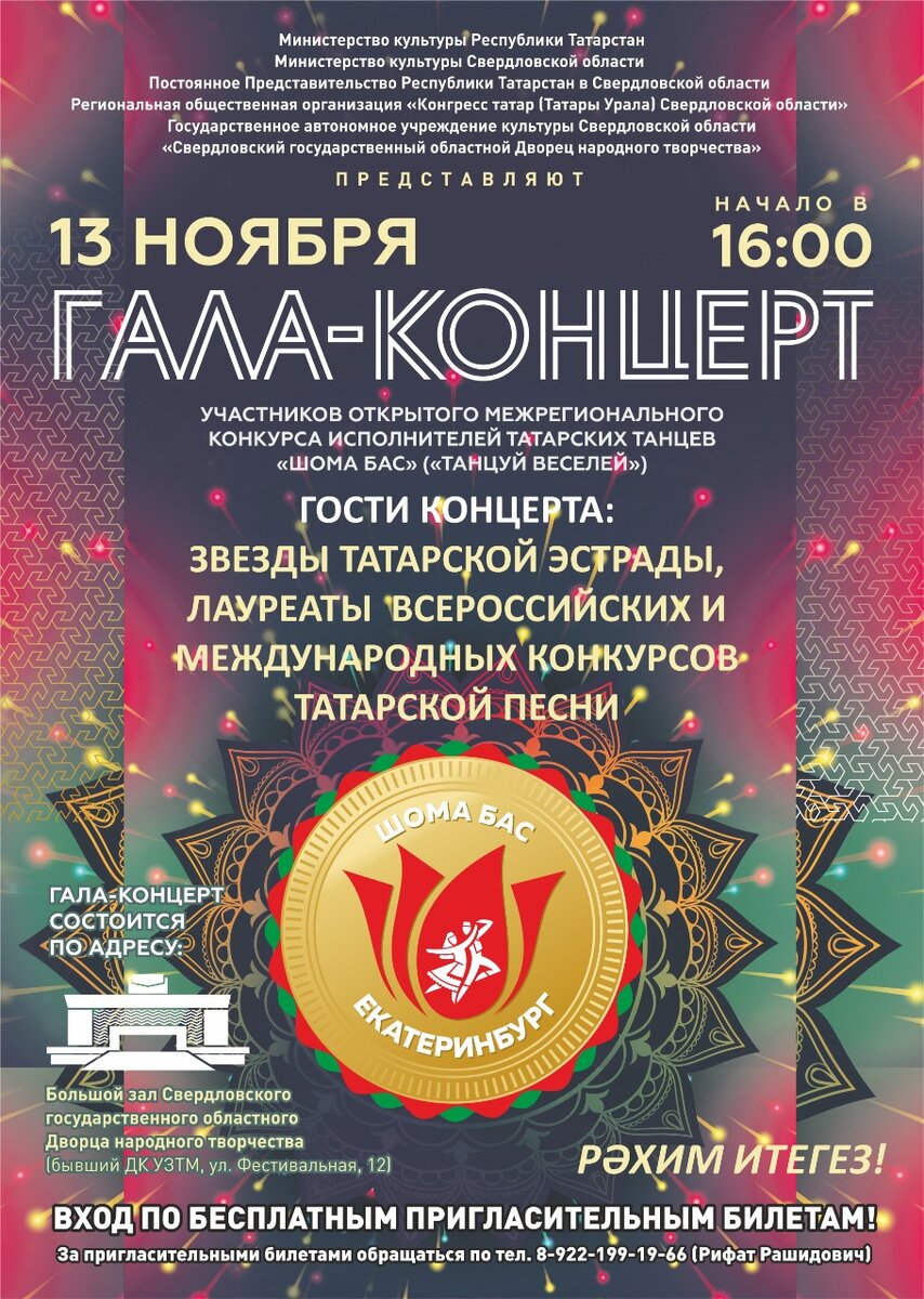 Межрегиональный конкурс исполнителей татарских танцев «Шома Бас», проводится в Екатеринбурге с 2017 года. В Год культурного наследия народов России конкурс имеет особую ценность. Именно Екатеринбург, находясь на границе Европы и Азии, символично объединяет многонациональные коллективы со всех уголков России. В этом году конкурс собрал участников из 14 регионов России, в том числе из 41 населенных пунктов. Это Свердловская, Челябинская, Курганская, Оренбургская, Тюменская, Нижегородская, Кемеровская области, Пермский край, республики Татарстан, Башкортостан, Коми, города Астрахань, Санкт-Петербург, Южно-Сахалинск. Конкурсантов оценивает профессиональное и компетентное жюри под председательством Хаметова Айрата Ринатовича, художественного руководителя Государственного ордена Дружбы народов Ансамбля песни и танца Республики Татарстан, обладателя Золотой медали Тюркского мира, народного артиста Республики Татарстан. Гала-концерт Межрегионального конкурса исполнителей татарских танцев «Шома