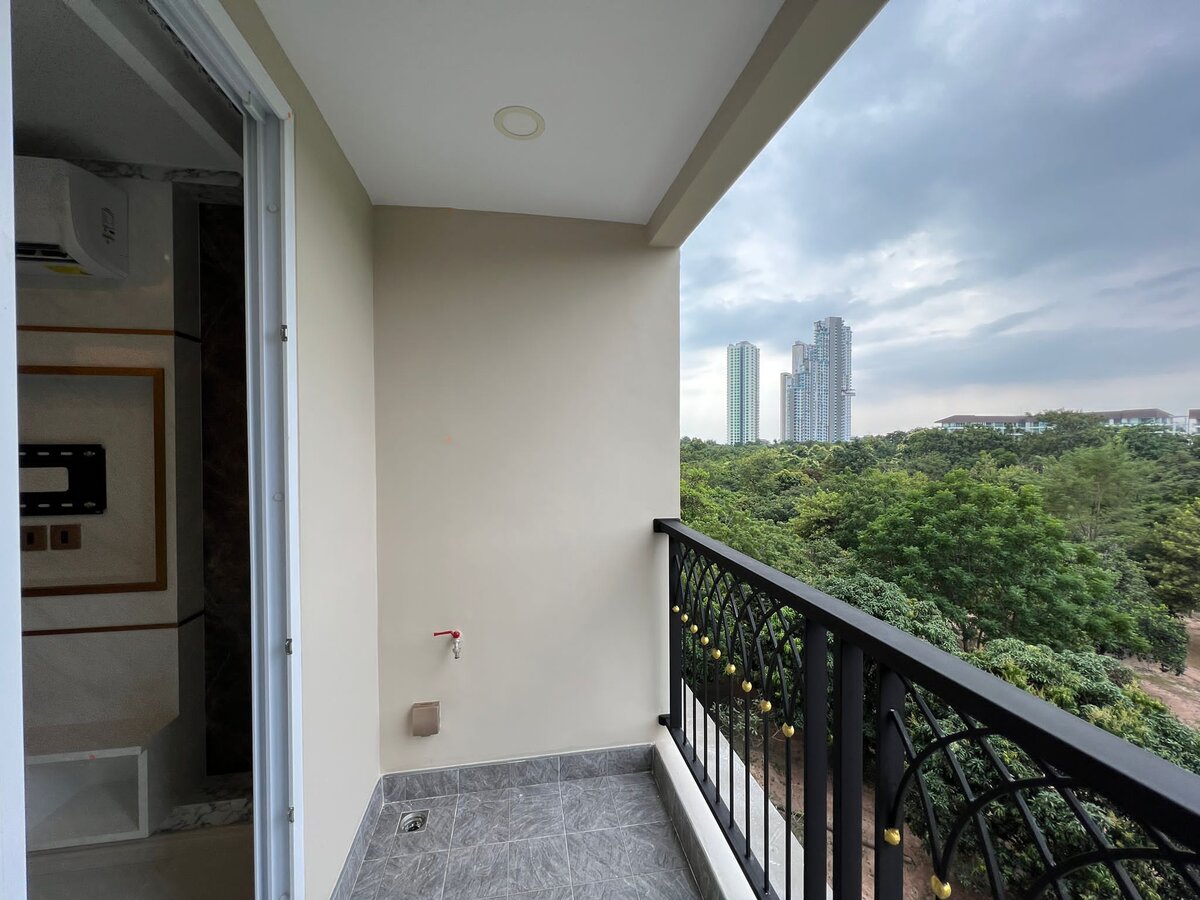 Квартира находится на 6 этаже с видом на сад и город, площадь 34 кв.м. Полный новый мебельный пакет, включая ТВ входит в стоимость, мебель в упаковке.