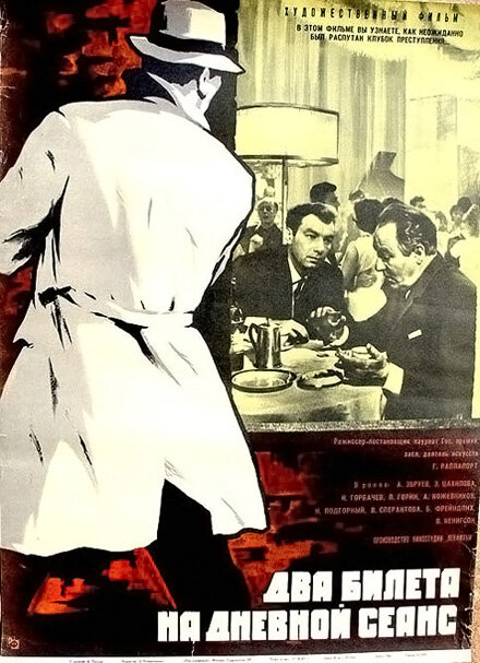 Продолжаю получать удовольствие от просмотра советских фильмов шестидесятых годов. На очереди шикарный, не побоюсь этого слова, фильм Два билета на дневной сеанс (1966). Во-первых, это просто добротный детектив, с крепким сюжетом, поставленный, кстати, по вполне реальным событиям. По нынешним временам, правда, сама детективная составляющая выглядит устаревшей - директор фабрики использует на производстве последние достижения науки, выплачивая изобретателю в обход официальных органов "премию". Но как часто бывает в детективах (да и не только в детективах), то, вокруг чего вертится сюжет, не так уж и важно. Важно - как он вертится. Во-вторых, в этом фильме снялся такой букет великолепных советских актеров, что, на мой взгляд, достаточно одного перечисления, чтобы бросить все и бечь смотреть кино. Станислав Чекан. Александр Январев. Бруно Фрейндлих. Владимир Кенигсон. Никита Подгорный. Игорь Горбачев. Александр Збруев. В фильме снялись в крошечных эпизодах знаменитые актеры, которых даже
