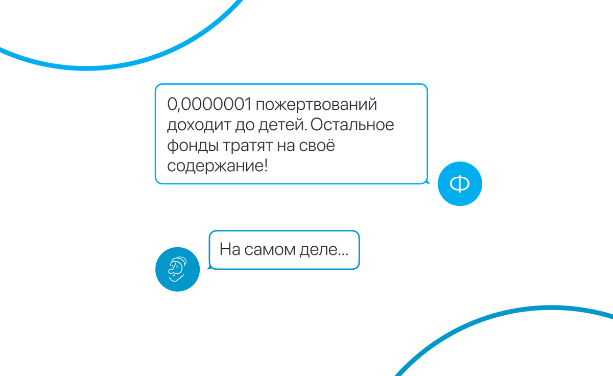 0,0000001 пожертвований доходит до детей. Остальное фонды тратят на своё содержание!