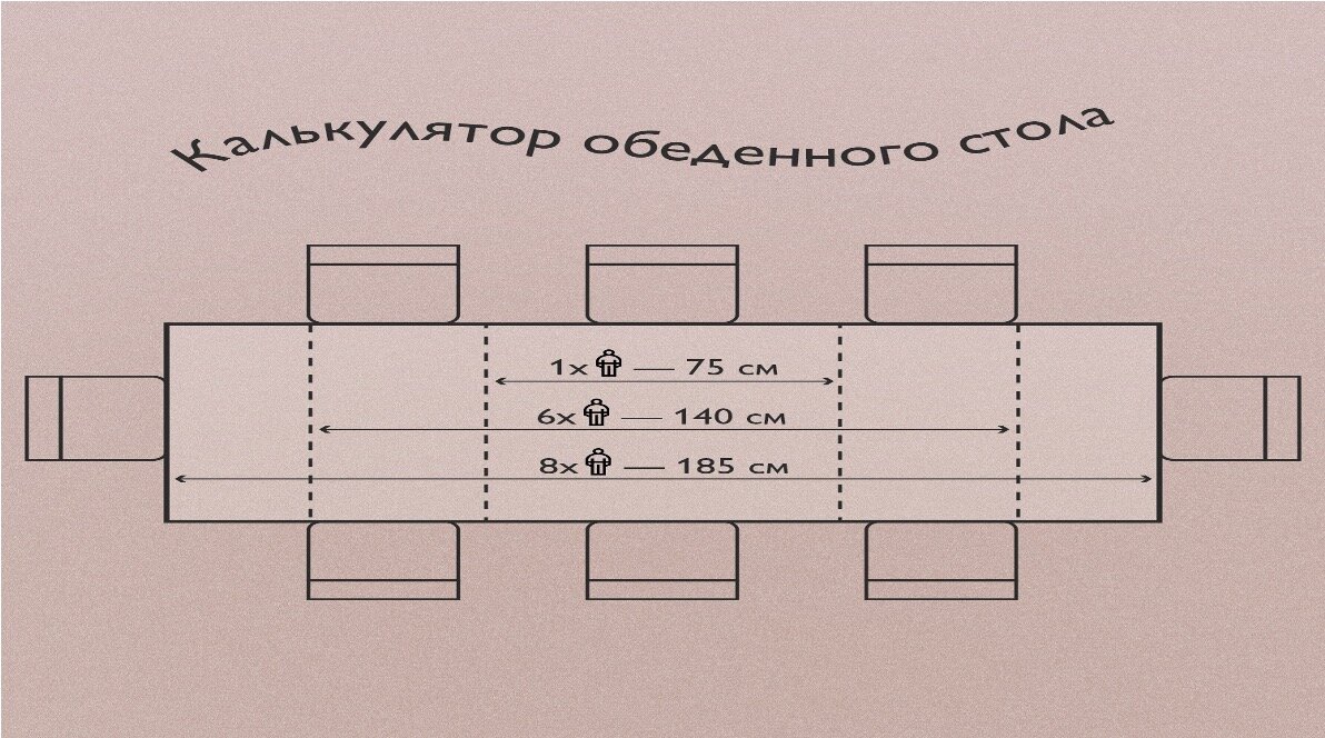 Довольно часто у людей возникает вопрос, какой стол подходит для их семьи. Основными критериями для выбора стола, как правило, становится материал, цвет и качество, но не стоит забыть про один не менее важный фактор, которым является его вместительность. Особенно остро этот вопрос поднимается, когда речь заходит о визите ваших друзей, родственников или коллег. Давайте же узнаем сколько места требуется, для того чтобы мест хватило каждому. Если выбирать его по принципу «понравился», потом может получиться «в тесноте, да не в обиде». Существует формула, которая позволяет рассчитать размер: