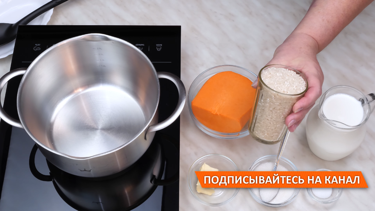Сегодня приготовим молочную рисовую кашу с тыквой!