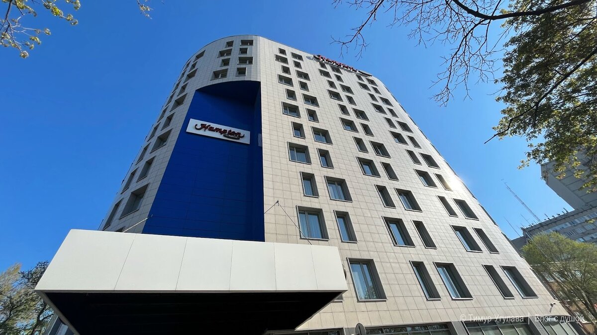 Уже вечерело, когда мы подъехали к Воронежу. Немного поплутав по улицам большого города, подъехали к отелю Hampton by Hilton. Специально выбрал это место, очень уж хотелось сравнить его с Holiday Inn, в котором останавливались здесь же, в Воронеже, в начале путешествия.