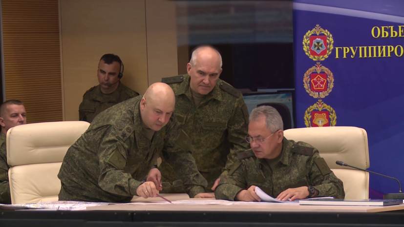 Командующий объединённой группировкой российских войск в районе проведения спецоперации генерал армии Сергей Суровикин представил главе Минобороны Сергею Шойгу доклад о текущей оперативной обстановке в зоне СВО. В частности, Суровикин рассказал министру о характере действий противника, выполнении боевых задач российскими военными, а также о вопросах обеспечения военнослужащих, призванных в рамках частичной мобилизации. Глава Минобороны России Сергей Шойгу проинспектировал командный пункт объединённой группировки российских войск, выполняющих задачи в рамках специальной военной операции на Украине. Об этом сообщили в МО РФ. В ходе поездки министр заслушал доклад командующего группировкой генерала армии Сергея Суровикина по текущей оперативной обстановке. Суровикин доложил Шойгу о характере действий противника и выполнении российскими войсками боевых задач на различных операционных направлениях, отметили в ведомстве. Отдельно обсуждались вопросы обеспечения всеми видами довольствия прибы
