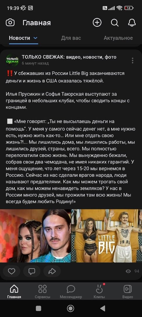 Попался мне тут такая новость про известную группу Little Big: Вот ни за что не поверю, что они такие прям такие жертвы, убегали из России с двумя чемоданами. Непонятно, от чего хоть они бежали, роняя тапки. Они сами свалили. Никто их вроде отсюда не гнал. Задолго до нынешних событий, они контракт с каким-то продюсером там заключили. А сейчас из себя жертв режима строят. Хотя их по сей день никак не трогают, песни из эфиров не убирают. Мне кажется, что они очень поверили в себя и свою значимость в мире музыки. У них давно туры были зарубежном, но скорее всего большая часть их иностранных поклонников,как раз были русскоязычными. Вот ребята решили, что можно выйти более масштабно на запад,свалив из своей страны, повод то нашли. Но только не рассчитали силенки и поняли, что не нужны то они там никому. Вот и нытье уже началось, как плохо, голодно и холодно. Скоро вернуться похоже. Я не могу понять, как такие крупные знаменитости как Little Big могут говорить о финансовых трудностях, да да