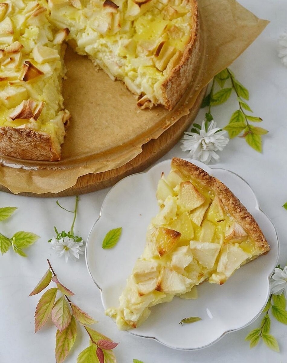 Пирог - это всегда хорошо . Всегда к месту и ко времени . И неважно - сладкий он или сытный . Домашний пирог создаёт тёплую, уютную, почти волшебную атмосферу . А аромат свежей выпечки соберёт всех домочадцев за столом на кухне . ИНГРЕДИЕНТЫ : Для теста : Мука - 220 г, Разрыхлитель - 1 чайная ложка, Сахар - 30 г, Сливочное масло - 120 г, Молоко - 100 мл . Для начинки : Яблоки - 4 - 5 штук, Сахар - 140 г, Яйца - 2 штуки, Сметана - 250 г . ПРИГОТОВЛЕНИЕ : 1) Смешать просеянную муку с разрыхлителем . Добавить сахар и порезанное на кусочки сливочное масло . Перетераем всё в мучную крошку . 2) Вливаем к мучной крошке молоко и замешиваем тесто . Оборачиваем тесто пищевой плёнкой и убираем в холодильник 30 - 40 минут . 3) Достаём тесто из холодильника и раскатываем . Выкладываем в смазанную форму для выпечки, формируем дно и бортики . 3) В разогретую до 180 градусов духовку ставим форму с тестом и выпекаем 15 минут . 4) Яблоки очищаем и нарезаем на дольки .