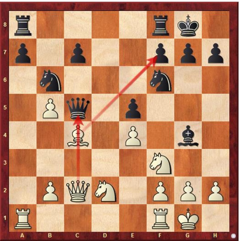 При вскрытом нападении вы делаете ход фигурой и открываете линию для атаки той фигуры, которая расположена позади неё. Такой ход может оказаться очень неприятным, поскольку фигура, которая делает ход, может создать одну угрозу, а вскрытая ею — другую. Противник не сможет защититься от обеих угроз одновременно. В шахматах, вы чаще всего используете свои фигуры для нападения на фигуры противника. Но иногда, самый сильный ход совершается не той фигурой, которая атакует, а той фигурой, которая отступает, помогая ей атаковать. Это называется вскрытым нападением. Посмотрим насколько силен этот приём на нескольких примерах.