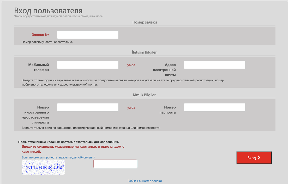 Для этого переходим по адресу https://e-ikamet.goc.gov.tr/Ikamet/DevamEdenBasvuruGiris
