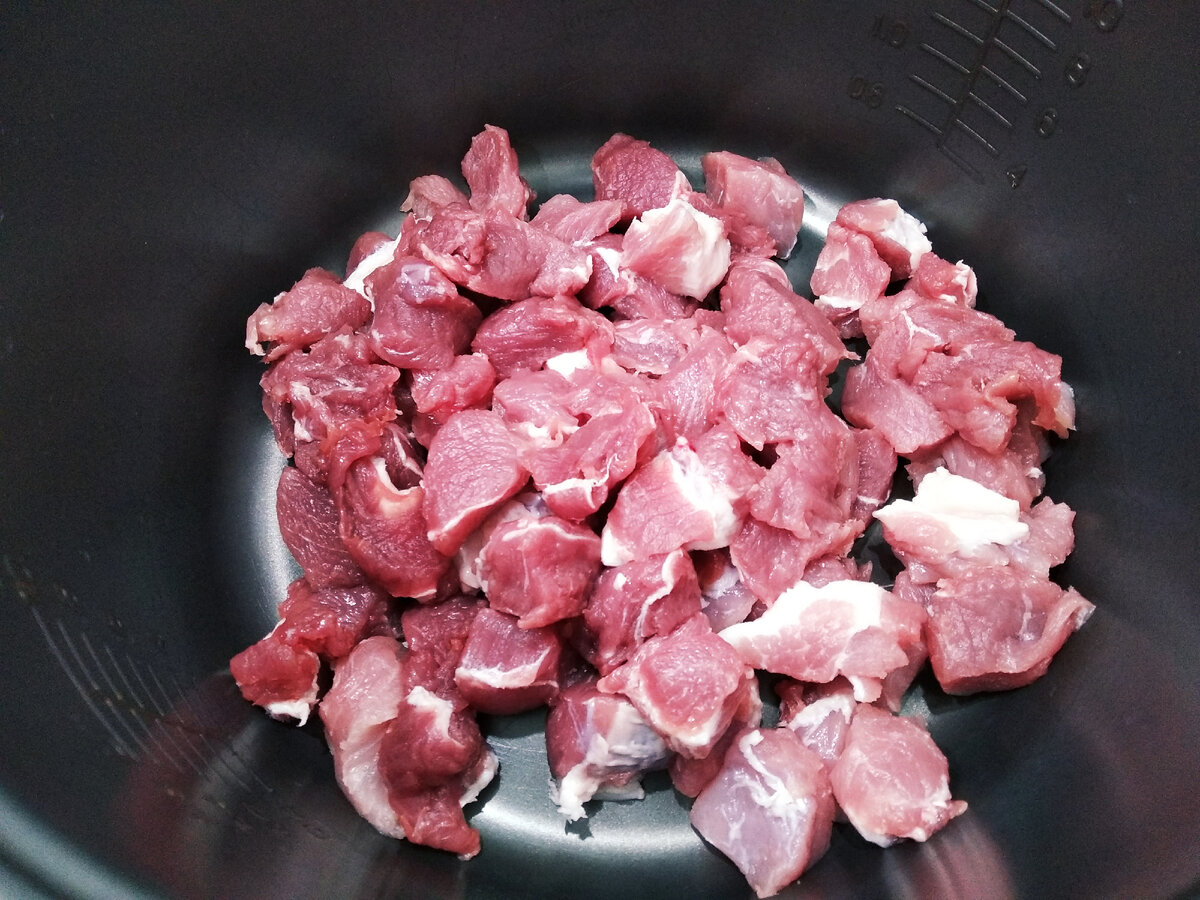 Привет:) сегодня буду готовить гуляш в мультиварке с вермишелью. Беру чашу мультиварки, нарезаю и кладу в неё мясо свинины (лопатка): Обжариваем на подсолнечном масле мясо на режиме "выпечка". Затем туда добавляем лук и морковь, так же обжариваем: Перемешиваем, солим, перчим: Обжариваем 30 минут, добавляю 3 зубчика чеснока, просто порезанного: Кладу туда же кетчуп томатный, примерно 2 столовые ложки: Немного муки: Перемешиваем: Добавляем воды, закрываем чашу мультиварки и ставим режим "тушение" на 2 часа: Водичку немного подсолим. В то время как готовится мясо, приготовлю вермишель. На разогретую сковороду высыпать вермишель: Начинаем её перемешивать, чтобы она не сгорела: Добавляю кусочек сливочного масла: Солим: Перемешиваем: Добавляем воды: Закрываем крышкой, ставим на медленный огонь: Готовим минут 5. Вермишель готова! Она потрясающая,очень вкусная: Такая рассыпчатая, не склеивается. Откроем чашу мультиварки, добавим лавровый лист: Как только чаша мультиварки запищит, мясо готово.