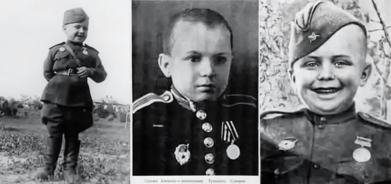 Когда началась Великая Отечественная война, на защиту родину вышли все, старики, взрослые, дети. Был среди всех солдат один юный мальчишка имя которого вряд ли знакомо всем. Не все знают и о том, что стало с ним после победы. Имя юного мальца – Сергей Алешков. Когда началась война, малышу, именно так можно его назвать, было 6 лет. Проживал он с матерью и братьями, в небольшой деревне Грынь, где сейчас Калужская область, Ульяновский район. Немцы заглядывали в каждый уголок, не обошли стороной эту деревню. К сожалению, фашисты не пощадили семью Сережи, убиты были и другие жители деревни. К счастью, мальчишке удалось убежать в лес, где в 1942 году его подобрали наши разведчики. Майор Михаил Воробьев, помощник комполка, решил усыновить Сергея. Именно так юный солдат стал сыном полка нашей армии. Сережа был мальчиком веселым, любил жизнь. Не удивительно, что все солдаты, военные, его полюбили и с нетерпением ждали встречи. Каждый раз он веселил советских бойцов частушками, песнями. Была от