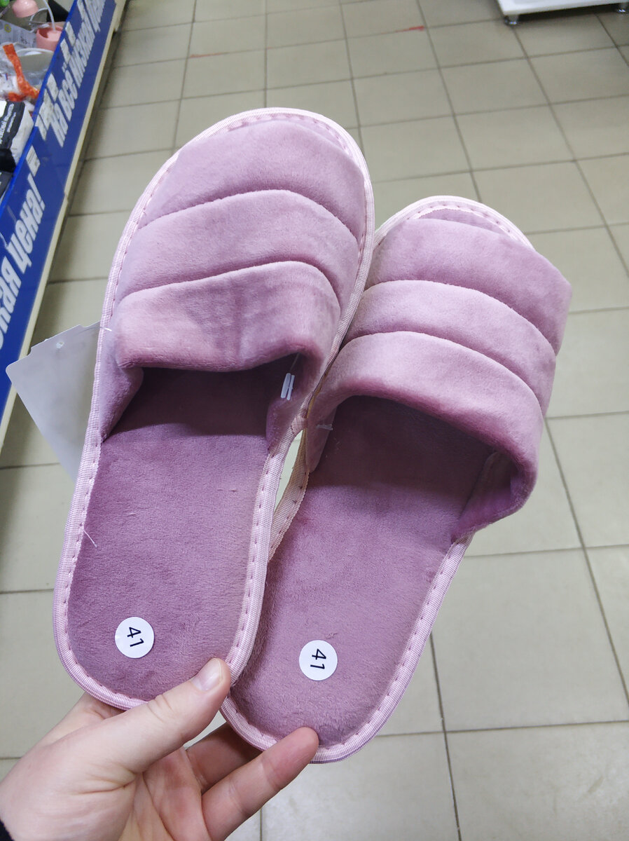 А начну, наверное, с тапочек и товаров для дома. На зиму все больше привозят то, что и ногам тепло обеспечивает. Вот такие симпатичные появилсь, плюшевые тапочки: