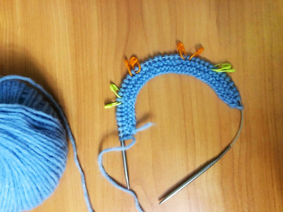 Всем доброго дня! Второй день своих стартов начинаю с обдумывания следующего проекта. Кардиган или комбинезон, не знаю хватит ли мне пряжи. У меня пряжа Эйр от Астра, в которой на 50гр/145м. у меня два целых и один начатый моток. Но она очень объемная, рекомендованные спицы №5. Пока начну вязать реглан и по ходу вязания все сложится, что же это будет. Для кого интересны расчеты. Набрала на спицы №5 40 петель. Связала 4 ряда платочной вязкой, чтобы получился небольшой воротник-стойка. И распределила петли на реглан: по 8 петель на полочки, по 5 петель на рукава, 10 петель на спинку, и по одной петле – линии реглана. Вяжу реглан, прибавки делаю из протяжек. После длины регланной линии в 10,5см, разделила деталь, отсоединив рукава на контрастную нить. Сразу после этого сделала ажурные дорожки по полочкам (накид, две вместе лицевой). Довязала моток до конца. И перешла к вязанию рукавов, чтобы понять хватит ли мне пряжи на полноценный комбинезон. Рукав вязала на 30 петлях + 6 петель подняты