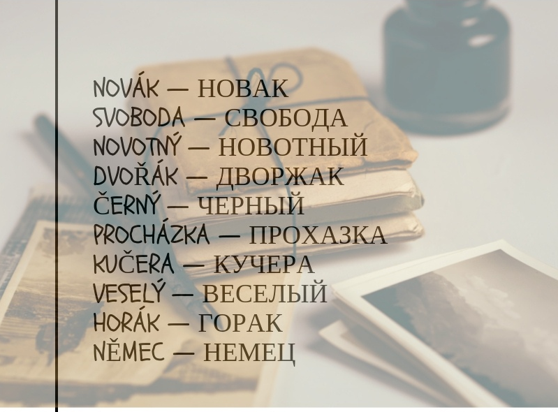 Чешский язык, хоть и славянский, но очень уж отличается от русского, а потому нам бывает трудно понять, что скрывается за чешскими фамилиями. Между тем фамилии у чехов довольно интересные.