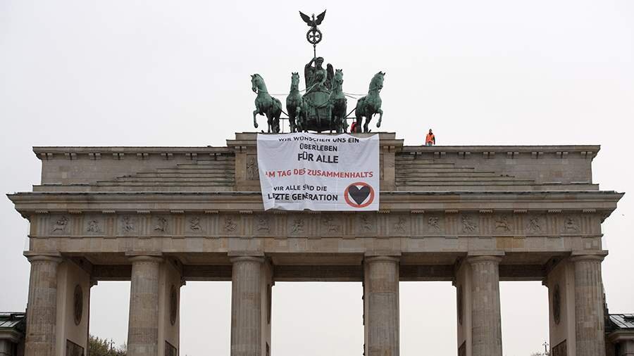 Активисты экологического движения «Последнее поколение» забрались на Бранденбургские ворота в Берлине в знак протеста против изменения климата. Об этом организация сообщила 9 ноября на своем сайте. Две девушки вывесили на главной достопримечательности города плакат с надписью «Мы желаем выживания для всех, в День единения мы все — последнее поколение». Акция была приурочена к годовщине падения Берлинской стены. «Последнее поколение» пригласило членов правительства Германии, в том числе канцлера Олафа Шольца, на встречу, которая состоится 10 ноября, чтобы обсудить экологические проблемы. Ранее, 3 ноября, стало известно, что в одной из больниц Берлина умерла попавшая в ДТП велосипедистка. К ней не успели приехать спасатели, так как в тот день активисты «Последнего поколения» перекрыли движение. До этого, 30 октября, экоактивисты приклеили себя к скелету динозавра в берлинском Музее естествознания. Они протестовали против изменения климата, которое, как они полагают, приведет к вымиранию