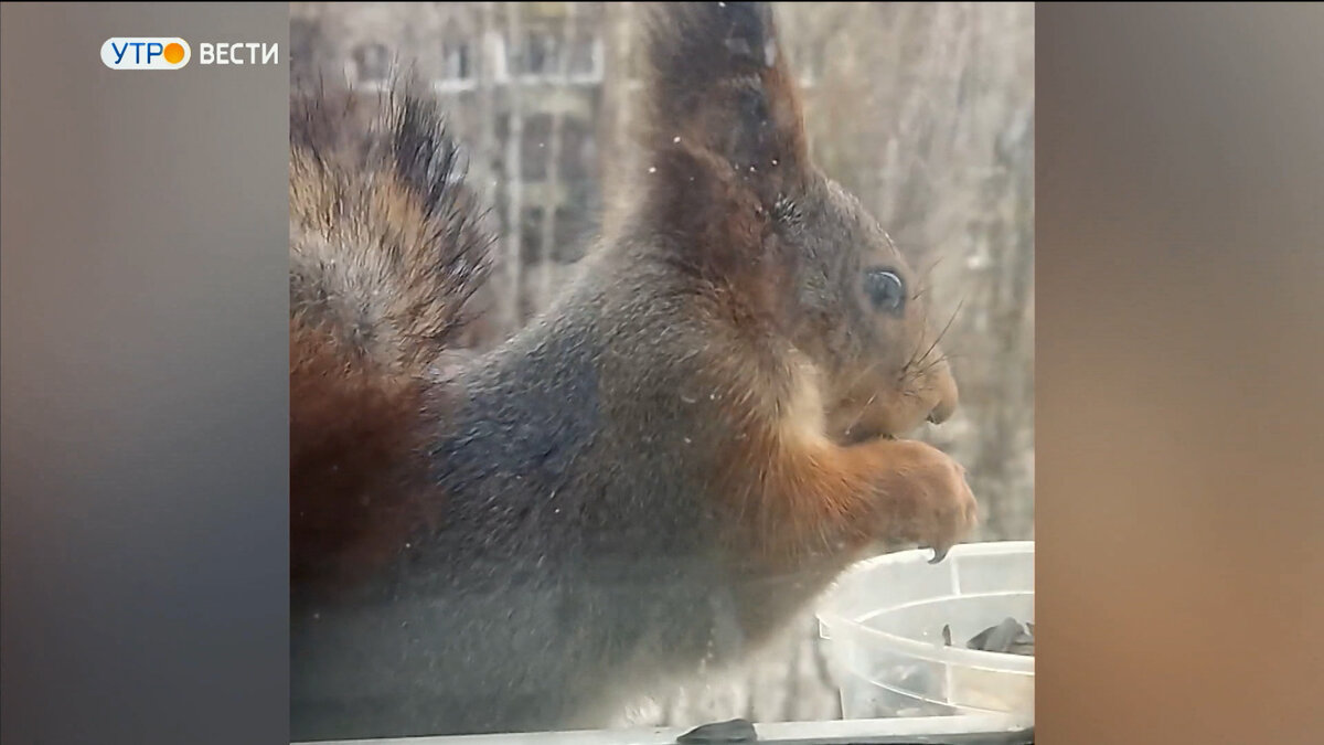 Невероятно: белка забралась на 6-й этаж, чтобы съесть семечки из кормушки