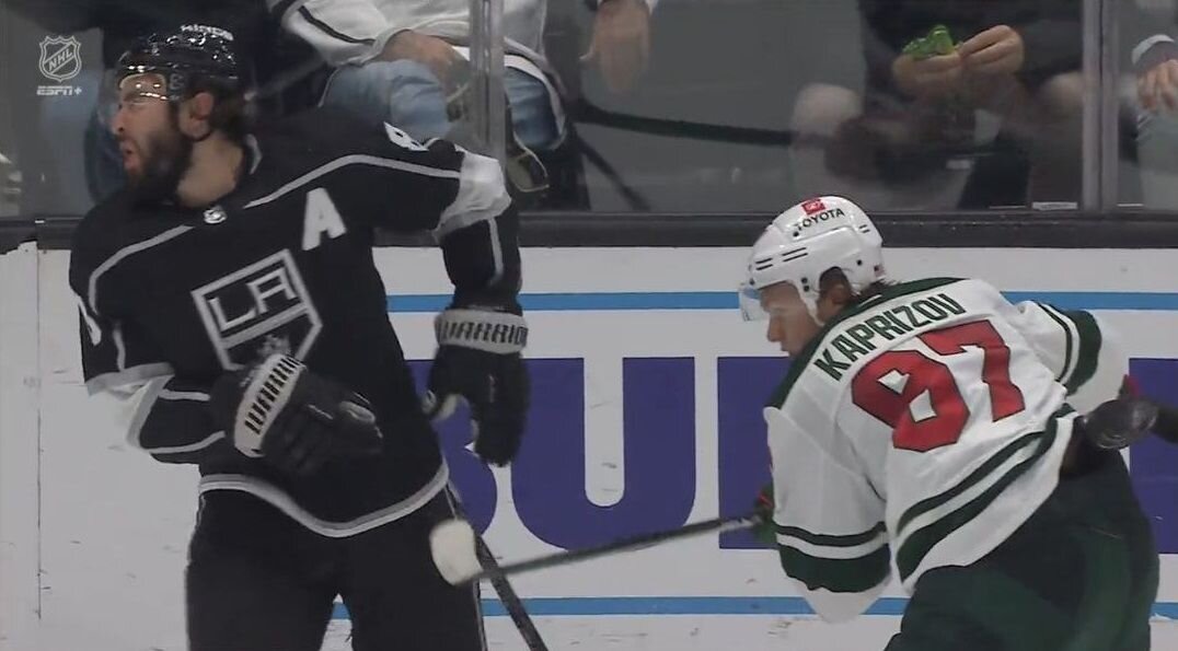 Кирилл Капризов-лидер и лучший игрок "Миннесоты Уайлд". Заблокировать его,лишить свободы на льду-и его команда уже не столь грозна. Я не хочу никого обижать,но будем откровенны: россиянин-лицо и лидер этой команды. Именно он привлекает к ней интерес и,хоть команда ещё только на пути становления к статусу сильной команды, заставляет людей идти на стадионы и интересоваться им. В прошедшей игре против Кирилла грязно и нагло игра Дрю Даути,ветеран лиги,выступающий с 2008 года за "Лос-Анджелес Кингз" и знающий,что делать на льду. Толчки в спину,грубая игра на грани-всё это он проделывал с лидером противников и добился своего- Капризов буквально взорвался и когда Дрю помахал перед лицом клюшкой грубо ударил его в лицо. После него Даути изображал муки боли (хотя конечно не отрицаю,что всё же это было больно),но уж очень быстро он забыл об этом инциденте и весело улыбался после решения судей. А судьи решили дать Кириллу матч-штраф и удалили до конца матча. Без россиянина у "Миннесоты" шансы на