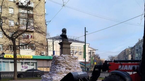 Коммунальные службы Харькова закрыли мешками бюст поэта Александра Пушкина, чтобы защитить его на случай военного обострения в городе, однако некоторые "патриотические" журналисты потребовали снести его, сообщает 9 ноября "Страна.UA" Директор департамента по связам с общественностью Харьковского горсовета Юрий Сидоренко сообщил, что харьковский Пушкин имеет статус памятника национального значения, а потому его перенос или демонтаж может осуществляться только с санкции Кабмина. Таким образом то, что сейчас происходит с бюстом Пушкина, полностью соответствует украинскому законодательству. Институт национальной памяти, в свою очередь, постоянно воюющий с памятниками в целях "декоммунизации" и "деколонизации", постановил, что, если памятник нельзя убрать или перенести, его нужно защищать как архитектурную ценность. С памятниками и бюстами Пушкина борются по всей Украине. Так, 24 сентября неизвестные вандалы в очередной раз нанесли на памятник Пушкину матерные фразы и речевки.