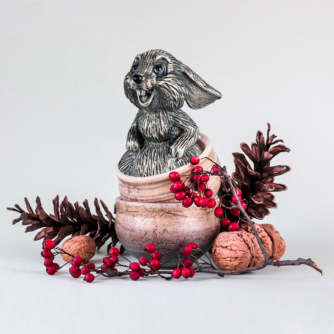 Добрые сказания гласят, что солнечные зайчики все время живут рядом с нами и следят за тем, чтобы вокруг царила атмосфера добра. Именно поэтому дети и домашние питомцы так любят играть с отражением солнечных бликов, пытаясь поймать неуловимые лучики. Серебряная миниатюра в виде очаровательного зайчика не только принесет вам удачу в новом году, но и наполнит ваш дом светом. Зайчик помогает творческим натурам найти свою музу, а семьям сохранить тепло домашнего очага. Подарите себе и своим близким радостные мгновенья, наполненные особым смыслом. Пусть традиция дарить друг другу символ года станет красивой деталью в вашей памяти и продолжением ваших чувств!