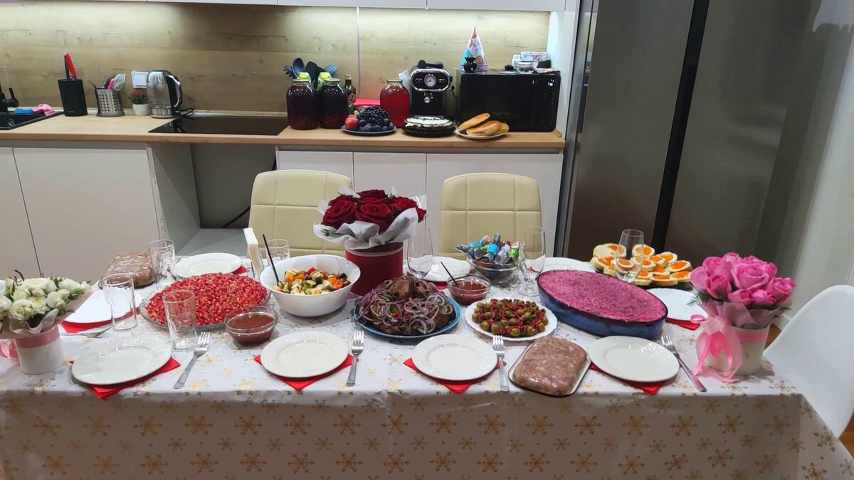 Хочу сегодня показать праздничный стол, который я приготовила по случаю Дня рождения моей мамы и дочки. Родились мои девчонки в один день, с разницей в 65 лет. Маме исполнилось 69, а дочке 4 года. Праздники мы, как правило, отмечаем дома и накрываем вкусные застолья из любимых блюд. Здравствуйте, уважаемые читатели! Меня зовут Дарья, я приветствую вас на моем кулинарном канале! Мы с мамой дружным "подрядом" приготовили стол за 3 часа. Далее в статье я расскажу, какие блюда мы подали гостям. (Не обращайте внимания на задний план фото, мы недавно переехали и духовки у меня пока нет). Переходим к меню:😉 1. Не обошлось без гранатового браслета, потому что это любимый салат моей мамы. Желание изменницы - закон! Получилось очень вкусно. Готовим этот салат мы без свеклы. Если нужен рецепт, напишите мне в комментариях, я опубликую. 2. Без селедки под шубой ни один наш праздник не проходит. Я готовлю селедку без яиц и получается всегда очень-очень вкусно. Все гости