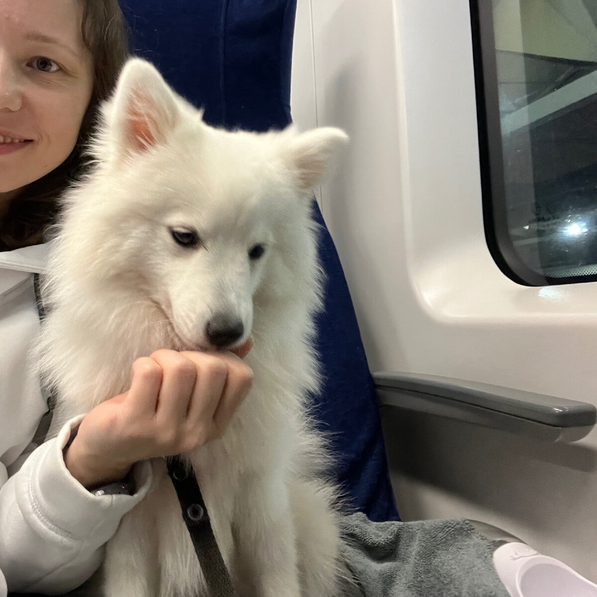 Путешествие Мики началось с поезда, где она внимательно осматривала пассажиров, знакомилась с некоторыми из них, особенно с детьми, и даже иногда дремала. И да, как видно по фото, хозяйку Мика тоже любезно согласилась взять с собой в поездку :) По приезду в Питер, собака посетила разные достопримечательности, побегала с местными собратьями, поела вкусную еду и даже попила из Питерских луж (по недосмотру хозяев). Как настоящая туристка и девчонка, Мика часто фотографировалась на фоне разнообразной красоты. Её хозяева не пренебрегали и просто фотографиями красивостей даже без участия собаки. Дорога домой прошла уже в машине, где Мика заняла своё тёплое местечко на коленках.