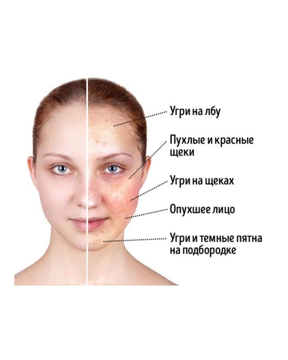 Как же выглядит глютеновое лицо в карусели картинки для наглядност👌🏻 ✅ Угри и тёмные пятна в основном на подбородке и вокруг него, но встречаются на лбу и щеках ✅ Опухшее лицо, быстрее спалзает в низ ✅ Пухлые и красные щеки ✅ Второй подбородок Сравнительно мало людей страдает глютеновой непереносимостью (целиакией) 👉🏻 всего 1%, но многие чувствительны к клейковине, которые находятся в пшенице, ржи и ячмене и это как раз приводит воспалительной реакции в организме. ❗️Чаще всего это может отразиться на лице, сделав его отекшим или опухшим. Глютен приводит к нарушению в работе органов желудочно кишечного тракта и хрупкий баланс половых гормонов сбивается, в результате чего и проявляются пятна или темная пигментация на подбородке, высыпания. Что же делать? 👉🏻 Попробуйте исключить на 3-4 недели продукты содержащие глютен. И увидеть как меняется ваше лицо и самочувствие💯