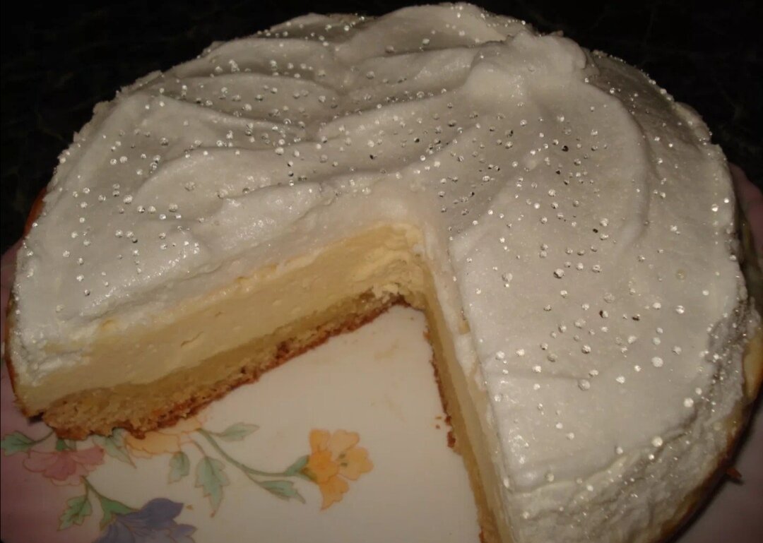 Ингредиенты: Основа: Мука 1 ст Разрыхлитель 1 чл Масло сливочное 80 г Сахар для основы: 2 ст л Яйцо 1 шт Начинка: 500 г творога 0.5 ст сахара 3 желтка 1 ст л манки 100 г сметаны/сливок Ванилин по вкусу Суфле: 3 белка 3 ст л сахарной пудры Приготовление: Основа: Муку смешать с разрыхлителем и охлажденным маслом, порубить. Яйцо взбить с сахаром. Все смешать, вымесить тесто. Готовое тесто завернуть в пищевую плёнку, отправить в холодильник на 30 минут. Начинка: Все ингредиенты смешать блендером до однородной массы. Суфле: Взбить белки в крепкую пену, добавив сахарную пудру. Достать тесто из холодильника. Выложить его в форму, разравнять его по форме сделав бортики (приблизительно 0.5-1см). На верх выложить творожную начинку. Выпекать при 180 градусах 20-30 минут. Вынуть торт из духовки, выложить на творожную начинку суфле, поставить выпекать ещё 10-15 минут до золотистого цвета! Главное, не передержать!!! Иначе, не получатся "слёзки". С духовки не вытаскивать, дать там ос