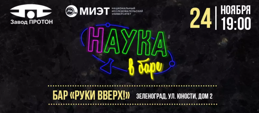 24 ноября в 19:00 АО «Завод ПРОТОН» совместно с НИУ МИЭТ проведут мероприятие в новом формате «Наука в баре». В рамках проекта в баре «Руки ВВЕРХ!» пройдет научно-популярная лекция и конкурс инновационных проектов. Всем желающим послушать лекцию и поддержать выступающих необходимо пройти регистрацию – количество мест ограничено! Спикер встречи – Борис Логинов, руководитель направления «Точные приборы» завода «ПРОТОН», заведующий научно-исследовательской лабораторией атомной модификации и анализа поверхности полупроводников МИЭТ, старший преподаватель кафедры квантовой физики и наноэлектроники МИЭТ, эксперт образовательного центра Сириус. Борис Альбертович проведет лекцию по теме «Зондовый микроскоп: от Нобелевской премии к массовому производству»: «Никто в мире не сделал микроскопы, подобные нашим, которые способны работать в горячей зоне атомных реакторов в условиях радиации или, к примеру, в плазме термоядерных токамаков при температурах, как у Солнца. Эти приборы стали глазами разви