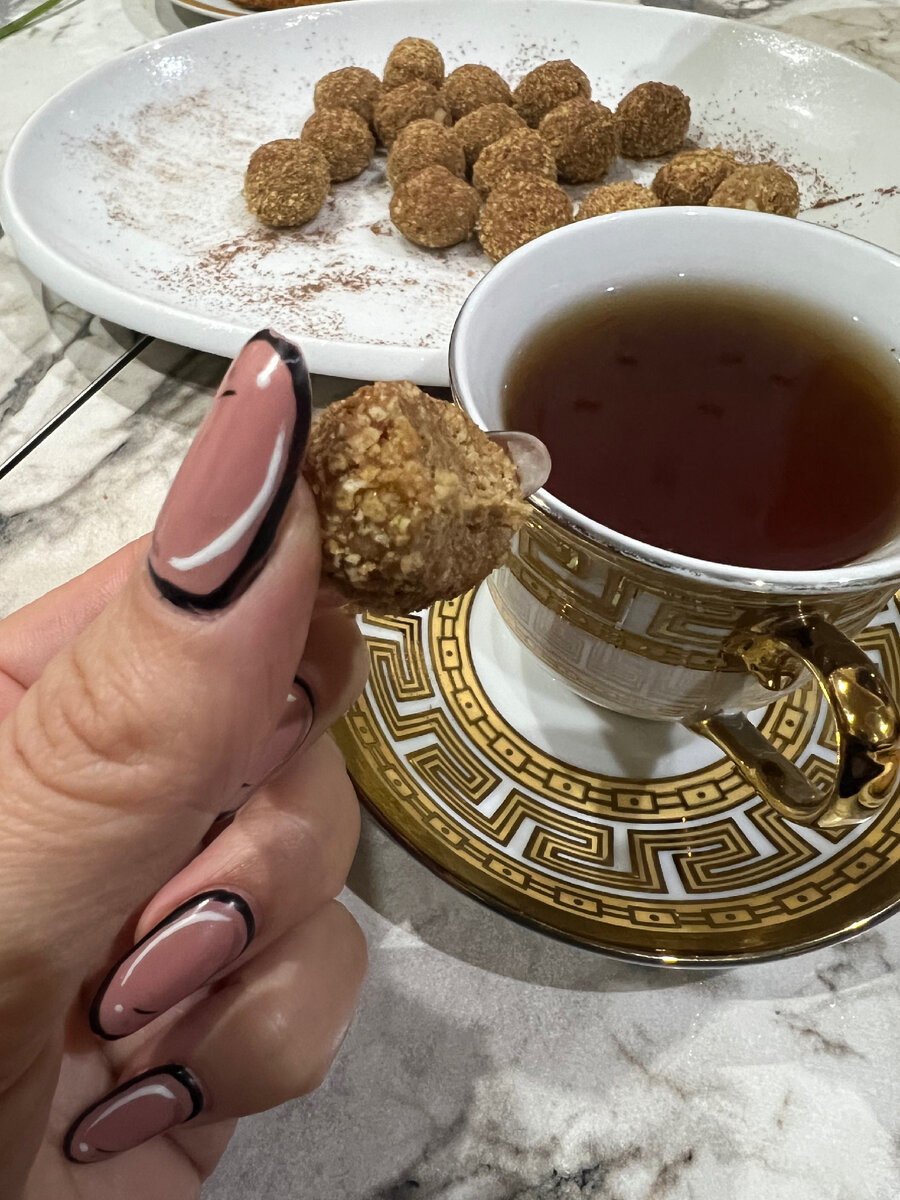 Самое быстрое приготовление и главное очень вкусное . Понадобиться кроши и сгущенка .Смешать всё, сформировать шарики и положить на время в морозильник.