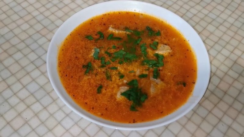 Харчо со свининой — вкусный, сытный суп с непревзойденным ароматом. Варить этот суп легко и просто. Следуйте нашей инструкции и у Вас всё получится! Необходимые ингредиенты Как сварить харчо из свинины — пошаговая инструкция Шаг 1. Отправляем мясо вариться и жарим лук Свиную мякоть промываем, нарезаем на кусочки, толщиной примерно по 3 сантиметра, отправляем в кастрюлю с водой вариться примерно на 40 минут. Во время варки — снимайте мясной шум. Тем временем мелко нарезаем 200 грамм лука. Наливаем в сковороду растительное масло и разогреваем. Высыпаем лук в сковороду, обжариваем, пока он не станет прозрачным. Шаг 2. Добавляем в сковороду морковь и томатную пасту Натираем 100 грамм моркови на крупной тёрке. Когда лук немного поджарился и стал немного прозрачнее — добавляем к нему тёртую морковь. Обжариваем всё вместе, затем добавляем 30 грамм томатной пасты, или же полторы столовой ложки. Так же зачерпываем из кастрюли несколько столовых ложек бульона и добавляем его в сковороду, что-бы