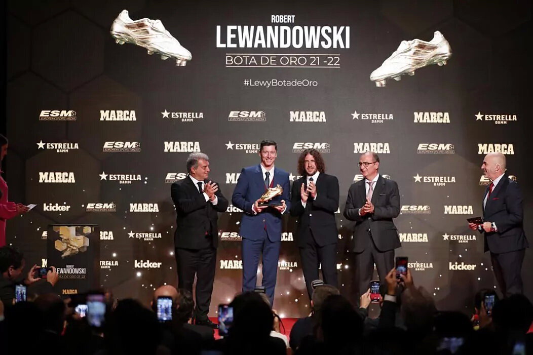 Нападающий Роберт Левандовски получил «Золотую бутсу» второй год подряд. Польский футболист, выступавший в прошлом сезоне за «Баварию», забил 35 голов за 34 игры в Бундеслиге-2021/22 и набрал 70 очков. Второе место занял форвард «ПСЖ» Килиан Мбаппе (28 голов в чемпионате Франции и 56 очков). Чиро Иммобиле («Лацио») и Карим Бензема («Реал») набрали по 54 очка (27 голов в Серии А и Ла Лиге соответственно). В 2021 году Левандовскому вручили «Золотую бутсу» за 41 гол в чемпионате Германии. Подробно со статистикой нападающего, минувшим летом перешедшего в «Барселону», можно ознакомиться здесь. Изображение: marca.com