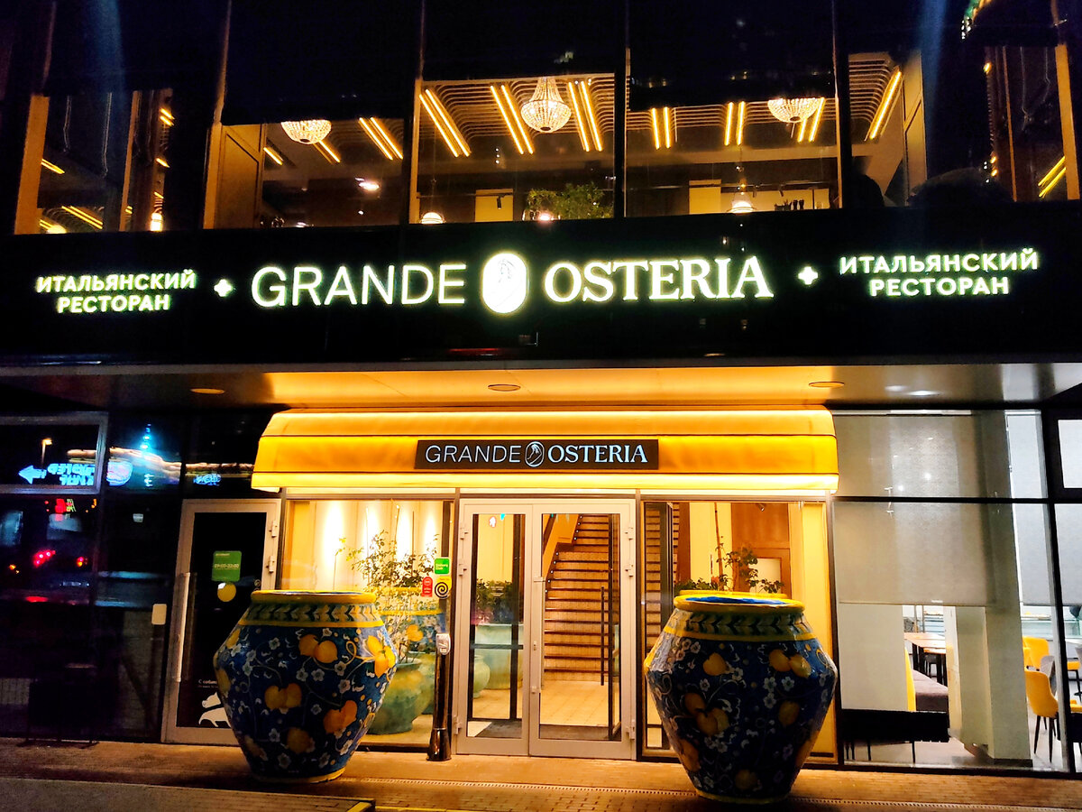 #249 Tестируем итальянскую кухню. Итальянский ресторан Grande Osteria находится в современном стеклянном двухэтажном здании на западе столицы. Ресторан занимает весь второй этаж. Открытая кухня позволяет наблюдать процесс готовки блюд. Печь с живым огнем. Мы пришли в ресторан в будни днём, занято было три столика. Позже, когда уже уходили, было занято столов 10. Приходят семьями с маленькими детьми, компаниями, парочками. Зал большой, столы, в основном, на четырех человек. Есть зона, которую шторками можно отгородить от основного помещения и получится отдельный кабинет. Можно отгородить не все четыре "стены", а три, две, одну - как удобно вам, посетителю. Здесь можно накрыть стол на 10 человек. Есть зона, в которой можно составить столы для большей компании. Мне понравились круглые столы, но они рассчитаны только на девять человек, 10-ти уже будет тесновато. Много зелени. Меня всегда радуют такие мелочи, как подставка для сумки (второе фото) и тканевые салфетки. Это говорит об уров
