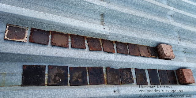 Продолжаем тест по выявлению лучшего антикора под названием "пушечное сало". В прошлый раз успешно прошли этап 7 образцов, которые и отправились на все лето под открытое небо: Посмотрим, что с ними произошло: 2. Пушечное сало "Ойлрайт". Покрытие потемнело еще больше, но внешне все без изменений. 3. Пушечное сало "БиКар". C краев продолжается медленное отслаивание покрытия, но основная площадь пока не повреждена. 4. Пушечное сало "ПолиКомПласт". Покрытие потемнело еще сильнее, но в целом без изменений. 5. Пушечное сало "MasterWax". Покрытие потемнело еще сильнее, с краев понемногу подступает ржавчина, но общая целостность не нарушена. 6. Пушечное сало "PROSTO". Также потемнело, но целостность покрытия сохранена. 7. Пушечное сало "Eltrans". Покрытие значительно потемнело, но остальное без изменений. 8. Пушечное сало "Старт". Значительно потемнело, ржавчина понемногу проникает справа. 9. Пушечное сало 1968-го года с в/ч. Покрытие слегка потемнело, появились затемненные области под ним, о