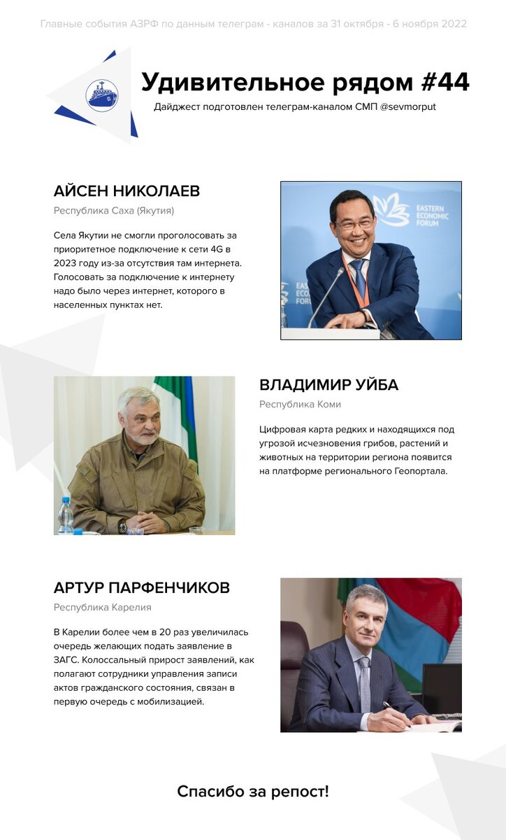 Жители сел Якутии не смогли проголосовать за приоритетное подключение к сети 4G в 2023 году из-за отсутствия там интернета. Жители этих сёл справедливо посчитали такое обстоятельство издевательством, так как голосовать за подключение к интернету надо было через интернет, которого в населенных пунктах нет. Владимир Уйба
