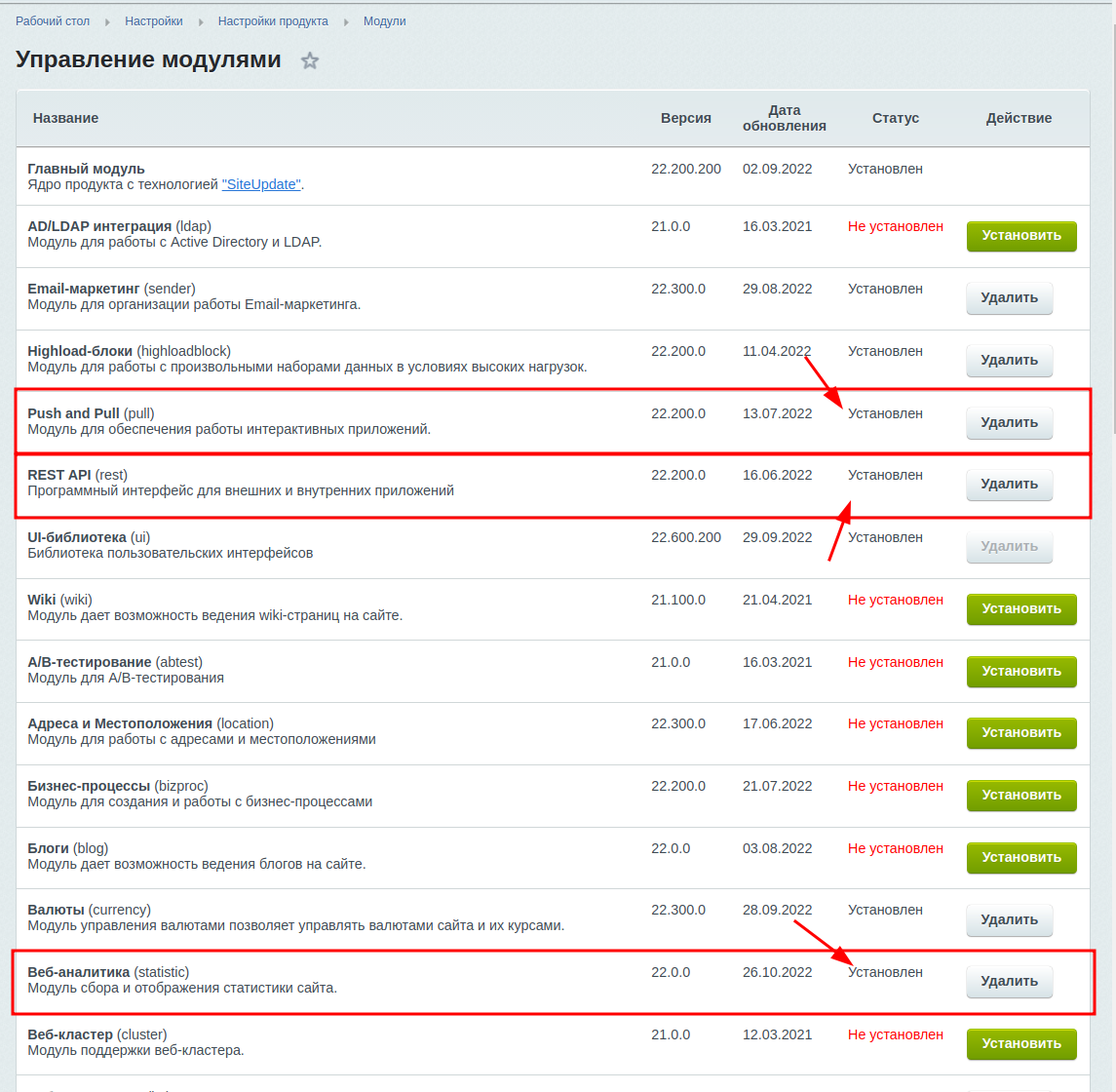 Установка и настройка модулей