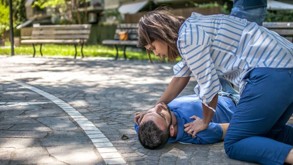 Сегодня мы не будем говорить о причинах и видах обмороков, а лишь кратко разберем доврачебную помощь при обмороке. Для начала давайте разберемся с терапевтом, что же такое обморок? Обморок – приступ кратковременной утраты сознания, обусловленный временным нарушением мозгового кровотока. Следует понимать, что во время обморока у пострадавшего сохраняется самостоятельное дыхание и сердцебиение, чего никогда не бывает при клинической смерти. При обмороке человек теряет на какое-то время сознание, но не требует проведения комплекса реанимационных мероприятий. Чаще всего обморок начинается с головокружения, чувства тошноты, потемнения в глазах, звона в ушах и слабости в ногах. Если вы почувствовали нечто подобное, то чтобы не допустить потери сознания, рекомендуется лечь таким образом, чтобы голова была ниже туловища, а ноги выше. Когда нет возможности лечь, следует сесть и, склонившись вперед, опустить голову между ног как можно ниже, чтобы к ней поступала кровь. Если вы оказались рядом
