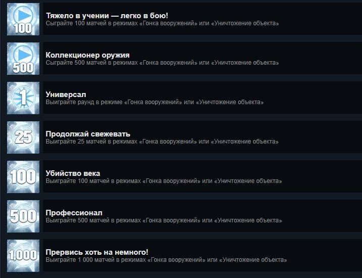 Как получить достижения в CS GO: Прервись хоть на немного!, Профессионал, Убийство века, Продолжай свежевать, Царь горы трупов, Коллекционер оружия, Тяжело в учении — легко в бою!