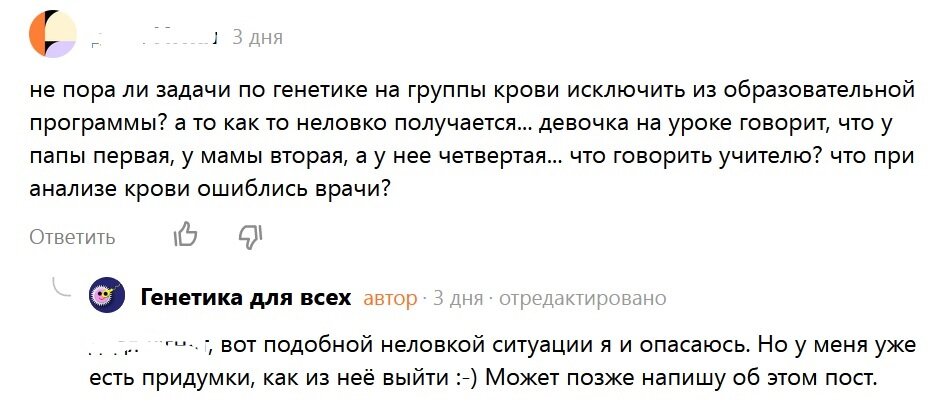 "Научился решать задачи на наследование групп крови и выяснил, что у детей моих родителей не может быть такой группы, как у меня!"