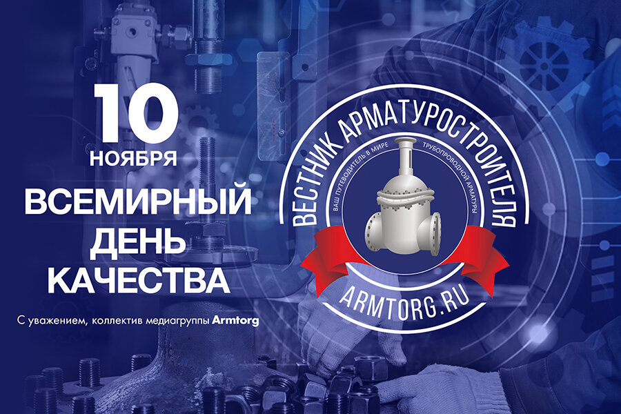 Сегодня, 10 ноября, отмечается Всемирный день качества. Данный праздник способствует формированию устойчивого интереса потребителей к качественным товарам и услугам, стимулированию предприятий и организаций к тому, чтобы совершенствовать выпускаемую продукцию и предоставляемые услуги с учетом современных мировых тенденций. Медиагруппа ARMTORG и журнал «Вестник арматуростроителя» поздравляют всех с праздником! Желаем счастья, здоровья, удачи, любви, благополучия, признания и качества! Высокого качества жизни, качественных отношений, качественных вещей и качественных, не второсортных событий. Пусть вся жизнь проходит так, чтобы на ней можно было поставить наивысшую пробу! С уважением, Медиагруппа ARMTORG