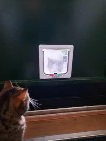 Привычный тыг-дык – это моя котя, с улицы через открытое окно, домой вернулась. Пёс спокойно спал в своей лежанке, не обращая ни на кого внимания. Тыг-дык повторился. – «Не понял?» - подумал я. Вслед за моей миниатюрной кошкой шёл огромный котяра. Она шла впереди, слегка подёргивая кончиком загнутого крючком хвоста, так они показывают друг другу направление движения. Он шёл, осторожно переступая белыми лапами по паркету, не издавая почти никакого звука, только опасливо озираясь. Увидел меня, остановился, посмотрел на Рейну. Она взглянула мельком на меня, потом на него, давая понять, что я не опасен. Я свой взгляд с гостя перевёл на спящего Трикса. Кот тоже посмотрел по направлению моего, увидел собаку и присел на все четыре лапы, готовый в ту же секунду смыться. Рейна замерла, уставилась на меня. Я понял, она привела гостя и просит меня обеспечить безопасность. Ну что ж, гостеприимство обязывает. Я тихонечко подошёл к спящей собаке, погладил его по голове, пёс проснулся, и пока не заме