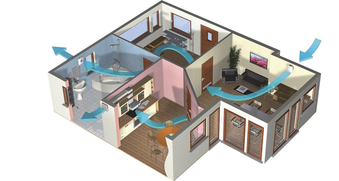 1) Регулярный воздухообмен в помещении, который создаёт благоприятный микроклимат для человека.