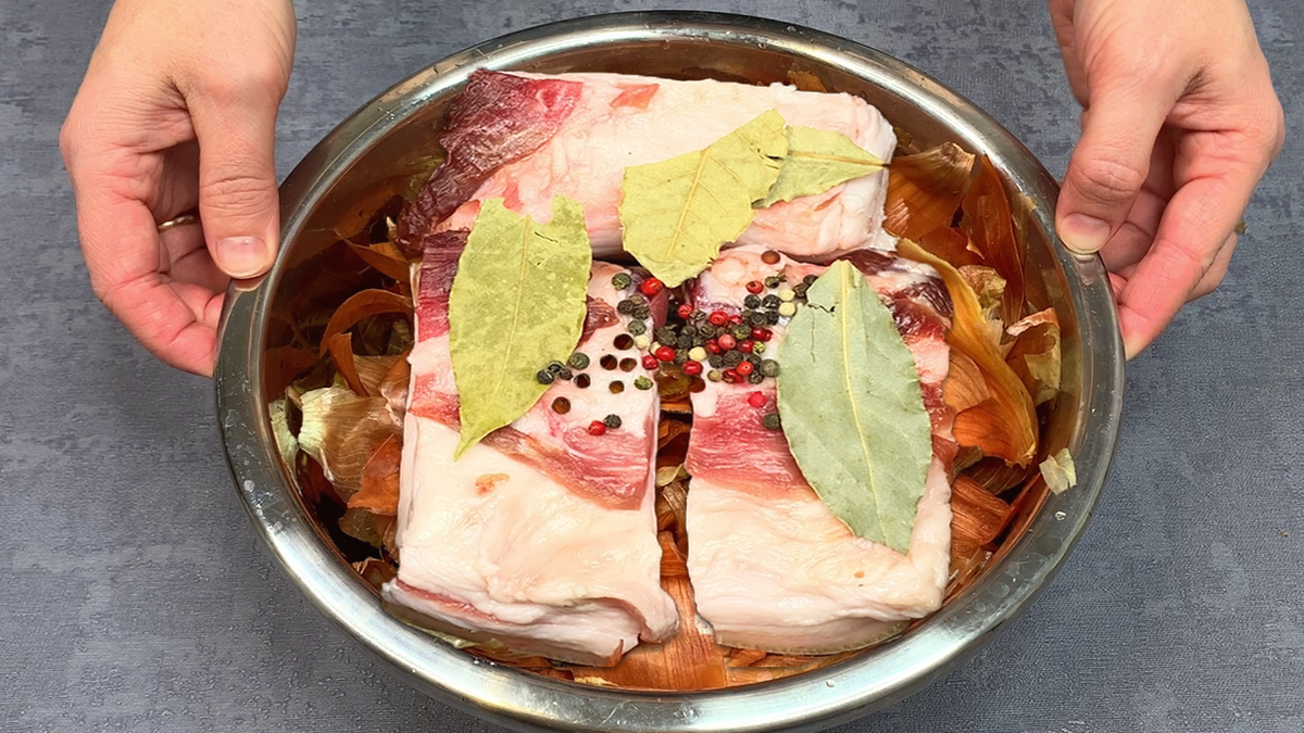 Беру сало и много луковой шелухи: вкуснейшая закуска, просто бесподобна, даже шкурка тает во рту (готовится очень просто)