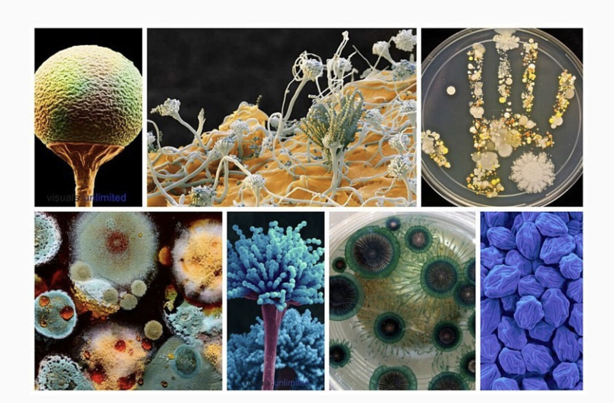Плесень — это микроскопические грибки, которые живут на тканях растений и животных. Никто не знает точное количество их видов: оценки варьируются от десятков тысяч до трехсот тысяч и более. Как и остальные грибы, они образуют споры, которые могут переноситься потоками воздуха и воды, а также насекомыми.
