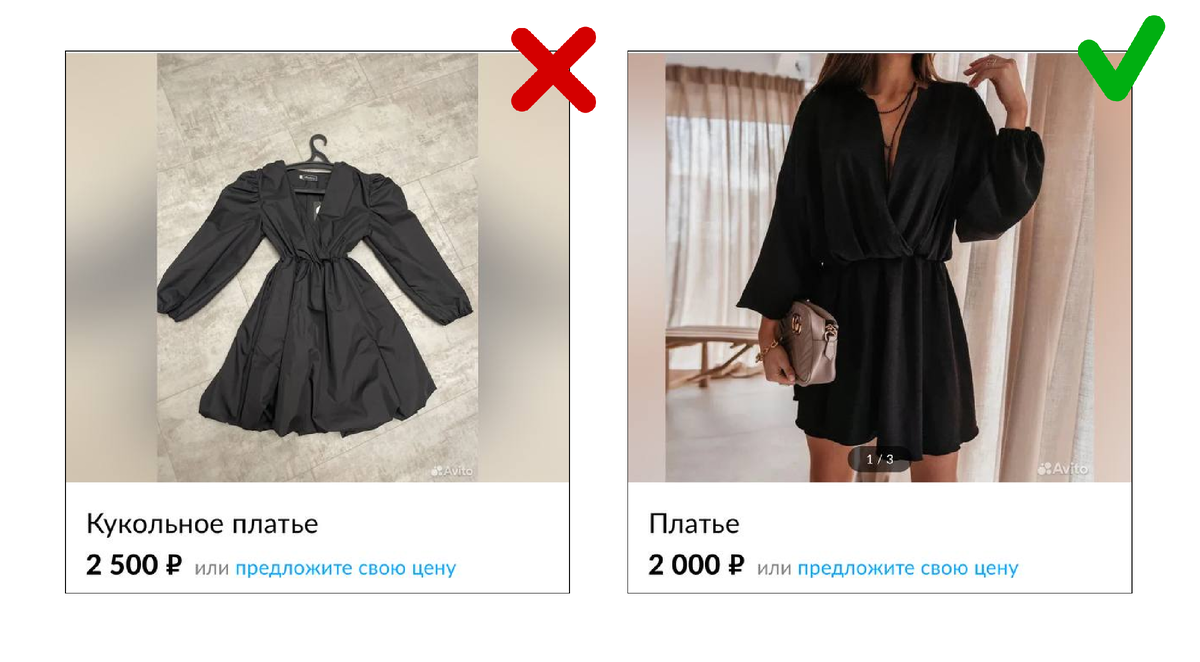 В этой статье расскажу как правильно создавать объявления, настраивать продвижение и оформлять аккаунт, чтобы Авито приносил дополнительный доход вашему магазину. Объявлений о продаже одежды на Авито очень много, но чаще всего это вещи, которые вышли из моды лет 10 назад и пылились в шкафу ожидая смерти на помойке. Именно поэтому одежда на Авито продается плохо. У потребителя есть убеждение, что продается там один хлам. Добавим к этому фото на полу, мятый неопрятный вид и продавцов, которые наотрез отказываются отправлять доставкой и получим формулу плохих продаж на Авито. Чтобы Авито приносил вам деньги, нужно изменить переменные: 1. Делаем красивые фото Люди принимают решение о покупке глазами. Фотографируйте при хорошем, лучше всего естественном дневном освещении. Вещь должно быть хорошо видно, она должна иметь опрятный вид, выглаженная и без налипших ворсинок. Желательно, чтобы вещь была сфотографирована на человеке, чтобы показать, как она будет сидеть. Правило простое, но на де