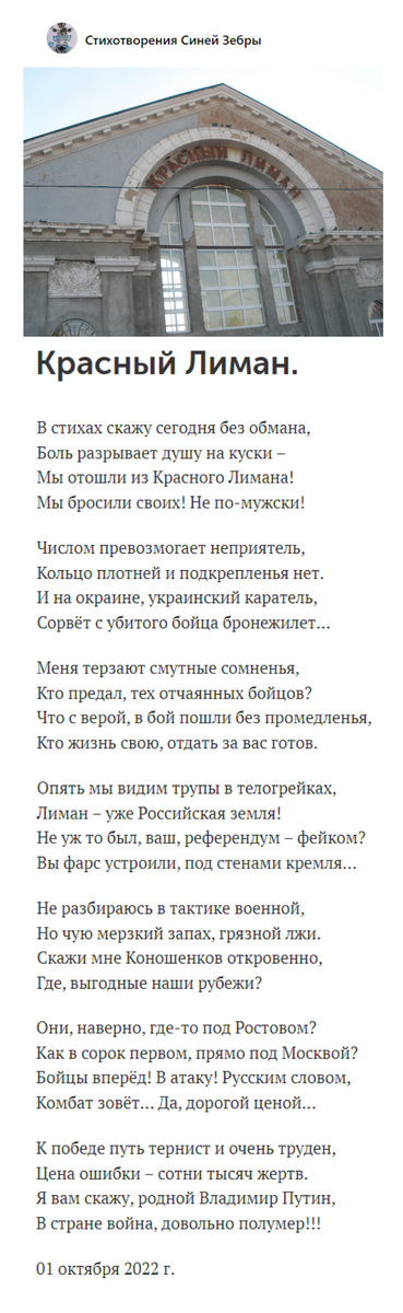 Страница автора стихов - https://stihi.ru/avtor/sinyazebra