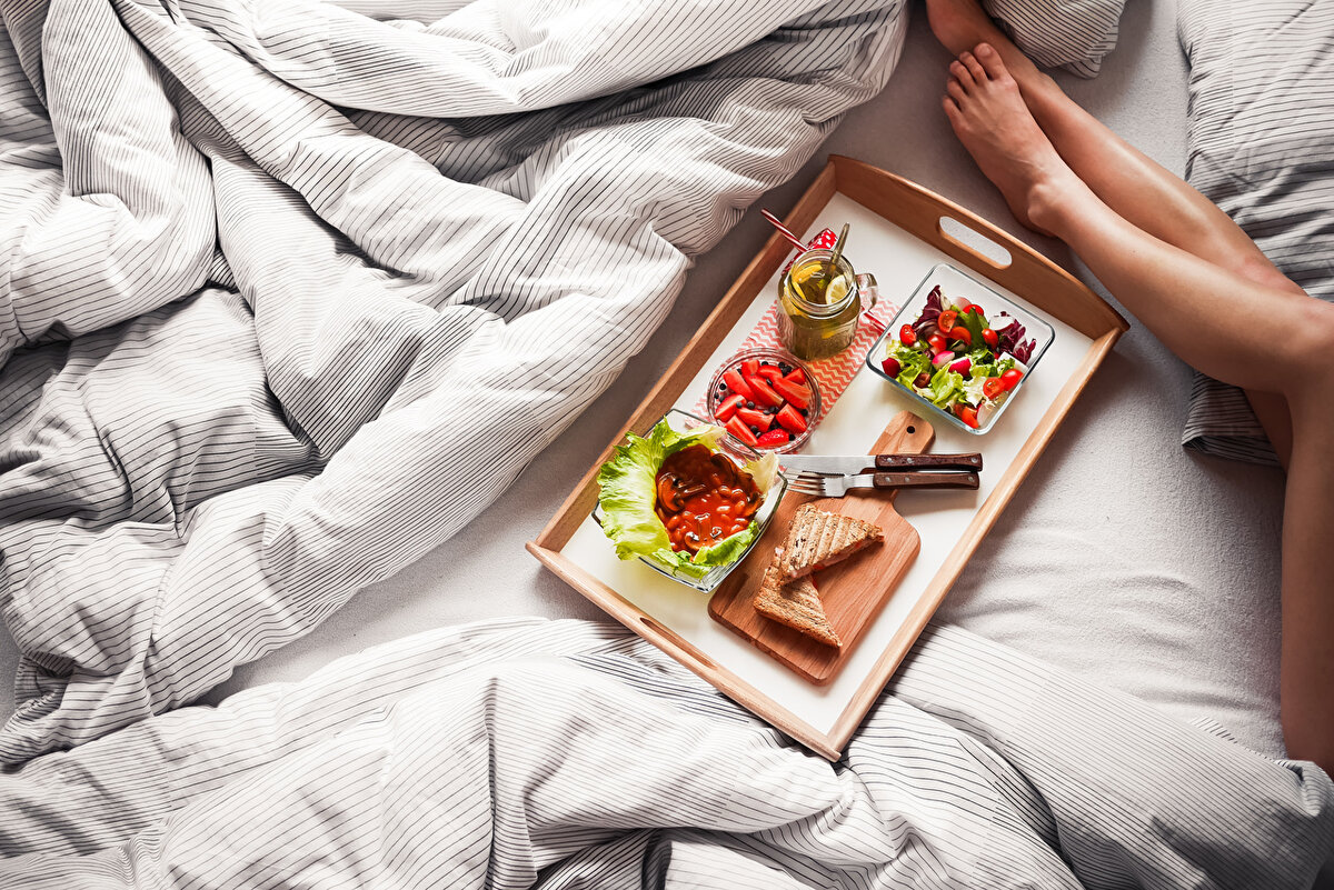 Мы тоже не понимаем, почему днем спится так сладко, а ночью еда становится вкуснее. Рассказываем, как рацион влияет на качество сна. Обычно ночью тянет на быстрые углеводы: чипсы, шоколад, мороженое. Это сигнализирует о том, что организм уже израсходовал энергию, необходимую для бодрствования, и ищет самое легкое решение проблемы. Результат: некачественный сон, утреннее отсутствие аппетита. Полноценный прием пищи на ночь также может нарушить внутренние биоритмы: организм будет занят перевариванием еды, а не отходом ко сну. Диетологи советуют есть на ночь лишь цельные продукты: нежирные белки, фрукты, овощи, орехи или семена. Они содержат питательные вещества, которые могут улучшить качество сна и настроение. Ниже делимся вариантами легких перекусов. Их не просто разрешается есть на ночь, но и рекомендуется. Бананы Это источник триптофана, калия и магния — они снижают мышечное и нервное напряжение, синтезируя производство гормона сна, мелатонина. После употребления двух бананов уровень