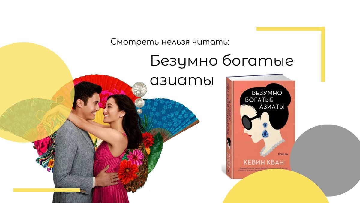 "Безумно богатые азиаты" - история о китаянке Рейчел, выросшая в США, которая решает отправиться в Сингапур вместе со своим парнем Ником на свадьбу его друзей. Там она знакомится с его семьей и узнает его большой секрет: оказывается, он из очень богатой и аристократической семьи, которая, к сожалению, не хочет принимать выбор Ника. Основное противостояние возникает между Рейчел и мамой ее молодого человека. Персонажей в произведении много. С этой точки зрения, фильм будет проще для восприятия, потому что во время чтения есть вероятность запутаться в именах. Еще один плюс фильма - актеры. Среди них: Мишель Йео, популярная в последнее время из-за фильма "Все везде и сразу", "Кен Джонг, известный по "Мальчишнику в Вегасе", а также Гарри Шам и Генри Голдинг. Вместе с тем в фильме присутствует больше символизма. В качестве примера можно использовать игру маджонг. Во-первых, это игра занимает особое место в китайской культуре. Во-вторых, в сценах, где главные герои показаны за игрой знач