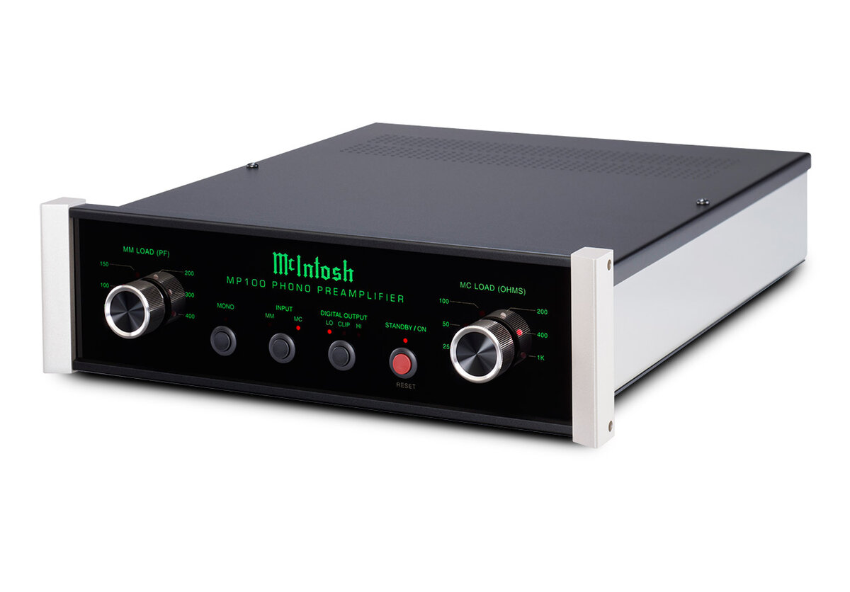 Фонокорректор MP100 построен в полном согласии с концепцией фирмы: максимум функционала, когда никакой каприз не покажется избыточным. Аппарат способен работать с головками ММ и МС, причем под каждую есть свой вход и нагрузку можно отрегулировать в зависимости от особенностей звучания и работы звукоснимателя. Регулировка происходит не с помощью джамперов или скрытых бог знает где микротумблеров, а прямо с передней панели устройства. Две ручки позволяют выбрать 6 вариантов нагрузки отдельно для каждого каскада усиления. Тут же переключатель режима ММ/МС, тут же кнопка переключения в моно, для совсем уж серьезных коллекционеров. Ну а дальше начинается самое интересное. McIntosh MP100 снабжен еще и встроенным АЦП, что позволяет не только слушать пластинки, но и записывать звук с них в цифровом виде на компьютер по USB или на любой другой носитель, поскольку тут еще есть коаксиальный и оптический цифровые выходы. Разрешение на всех фиксированное - 24 бита/96 кГц. Это с одной стороны покрывает все аудиофильские потребности в плане Hi Res, с другой не создает проблем с выбором режима работы цифровой части - в данном случае все оптимизировано, вплоть до специальной системы защиты от клиппинга, которую тоже можно активировать с передней панели. Подробностей инженерного решения не разглашают, но суть ее работы в том, чтобы несколько компрессировать сигнал с виниловой пластинки, если он слишком ярок или содержит много искажений на верхах - коротко говоря, если винил у вас запилен, эта кнопка может серьезно помочь.