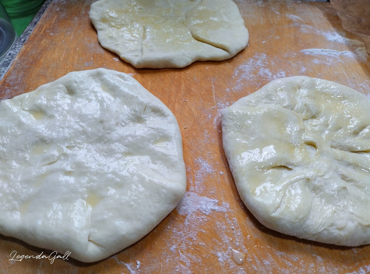 Ладно, продолжим про хачапури. Сначала сделала три штучки на один противень. Потом еще две такие же на второй, тот поменьше будет. И подумалось мне, что хватит одного вида выпечку клепать. Когда искала рецепт теста для хачапури, наткнулась на еще один способ приготовления. Не в лодочке, без яйца, а просто внутри лепешки. Это, оказывается, называется хачапури по-мегрельски. Ну и их сделала