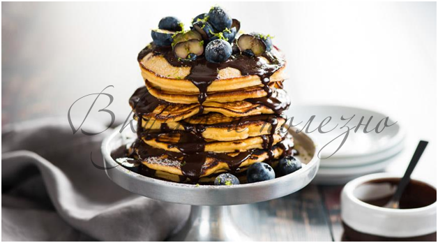 Этот десерт понравиться всем, кто любит сладенькое. Нежные блинчики, пропитанные шоколадом с черничным ароматом просто тают во рту. Ингредиенты Черника (можно замороженную) 400 г Молочного (35% какао) шоколада 200 г Сливки жирные 250 мл Мука 400 г Яйца 5 шт Молоко 1 л Растительное масло 3 ст л Ванильный сахар 2 ст л Соль 1 ч л Способ приготовления Яйца, соль и ванильный сахар, взбейте в очень пышную пену. Добавьте половину молока, перемешайте до однородности. Просейте в миску муку, и хорошо перемешайте, чтобы не было комочков. Влейте оставшееся молоко и растительное масло. Тщательно перемешайте. Накройте миску полотенцем и дайте тесту постоять 30 минут при комнатной температуре. Затем добавьте в тесто замороженные ягоды и перемешайте. Сильно разогретую сковородку слегка смажьте маслом. Выпекайте толстенькие небольшие блинчики на сильном огне. Готовые блинчики складывайте в кастрюлю под крышку. Затем растопите шоколад со сливками. Выложите на блюдо для торта блин, смажьте шоколадной сме